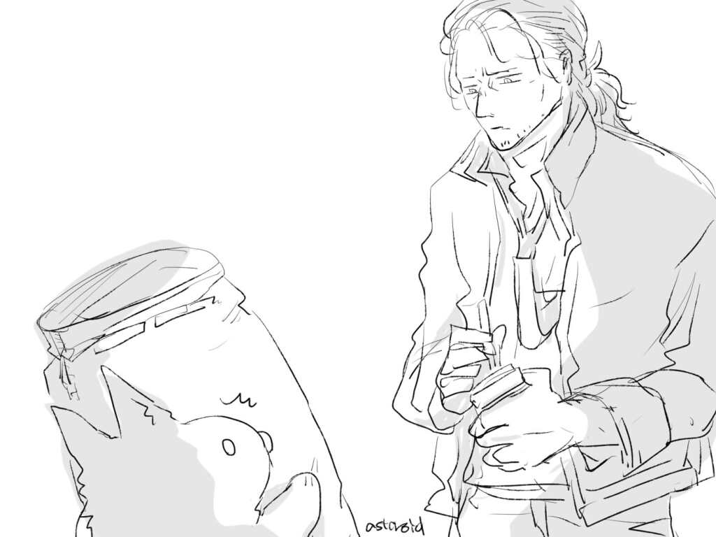 ふわふわくんmeetsオキフ 2025年10月31日 なんか知らない人がいる…!!と思うお仕事中のふわふわくん。 ロボットか何かか?とか誰がここにこんなものを配備したのか?とか疑問に思うも無表情オキフ。